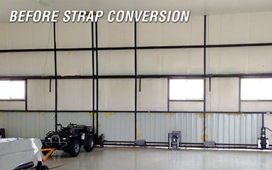 For years, bifold doors all around the country have been lifted and lowered by the conventional means of steel cables. Schweiss Doors has figured out a way to convert and modernize those existing cable bifold doors manufactured by other companies with its innovative liftstraps conversion kit that has easy to follow do-it-yourself install instructions. Schweiss Doors has been happy to accommodate all these requests.
