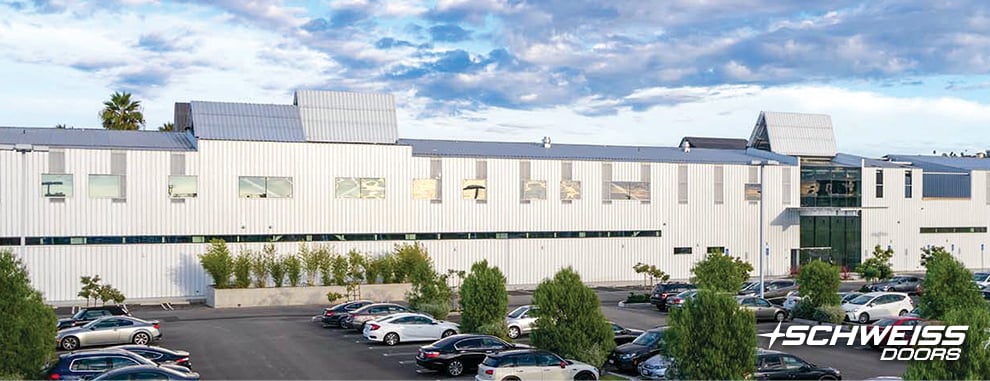 "The doors were big with very robust frames, that's why we chose Schweiss." said Nick Winton of the architectural firm of Anmahian Winton Architects. "We wanted to use a lightweight cladding material that was inexpensive and handled daylight well."