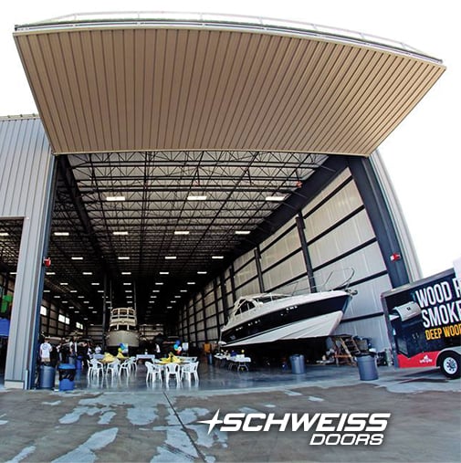 "Both doors are used primarily for the same purpose, to get boats in and out," said Operations Manager, Eric Evenhouse. "Over the years, we have learned that clearance is a big issue for getting the big boats in - we wanted to get into a different market with the 70-plus footers. It always seemed that limitations were always height in these big buildings.