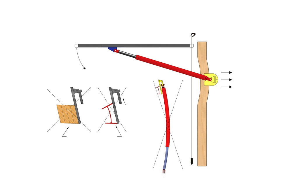 The subframe that the hydraulic cylinders attach to mount to the building door side columnss. The hydraulic cylinders exert strong rotating forces to the building door side columns as the door is being operated. It is important to limit the rotation of the door side columns. To aid in limiting this rotation, horizonatal braces are strongly recommended at the point on the door column where the cylinder attaches.