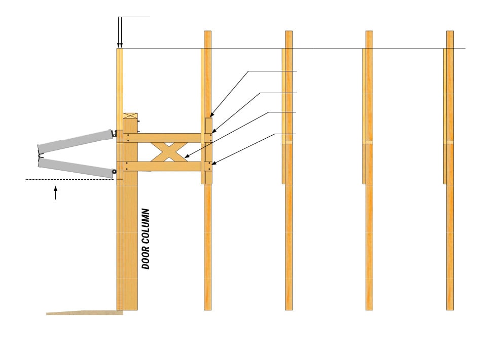 The doors WILL find the weak points in our building design. Many wood building engineers have a tendency to get lax with the design of the door supports and framing surrounding your doors and forget that we not only have to support the weight and wind on the door, we also have to support its operation.