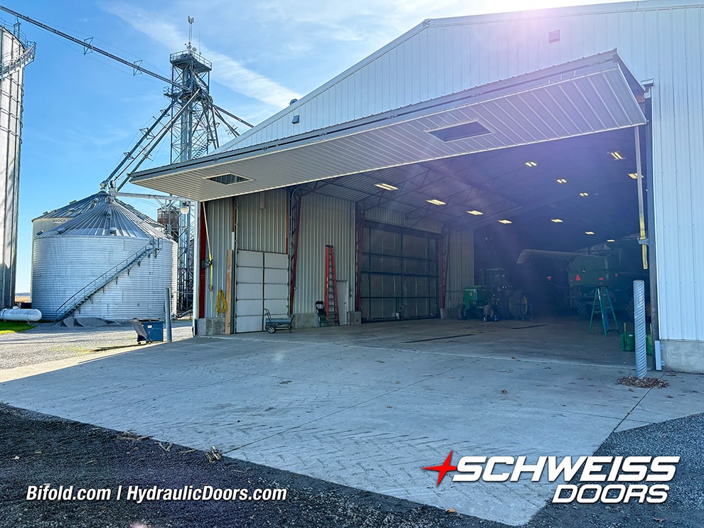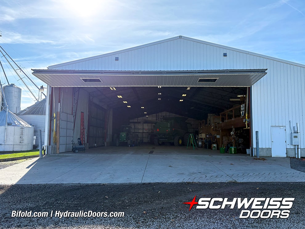 Wilson said he likes the bifold door design because it requires less clear space out front when opening. He also said he likes the Schweiss lift strap system.
