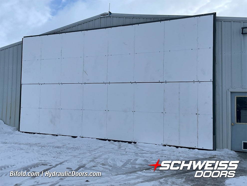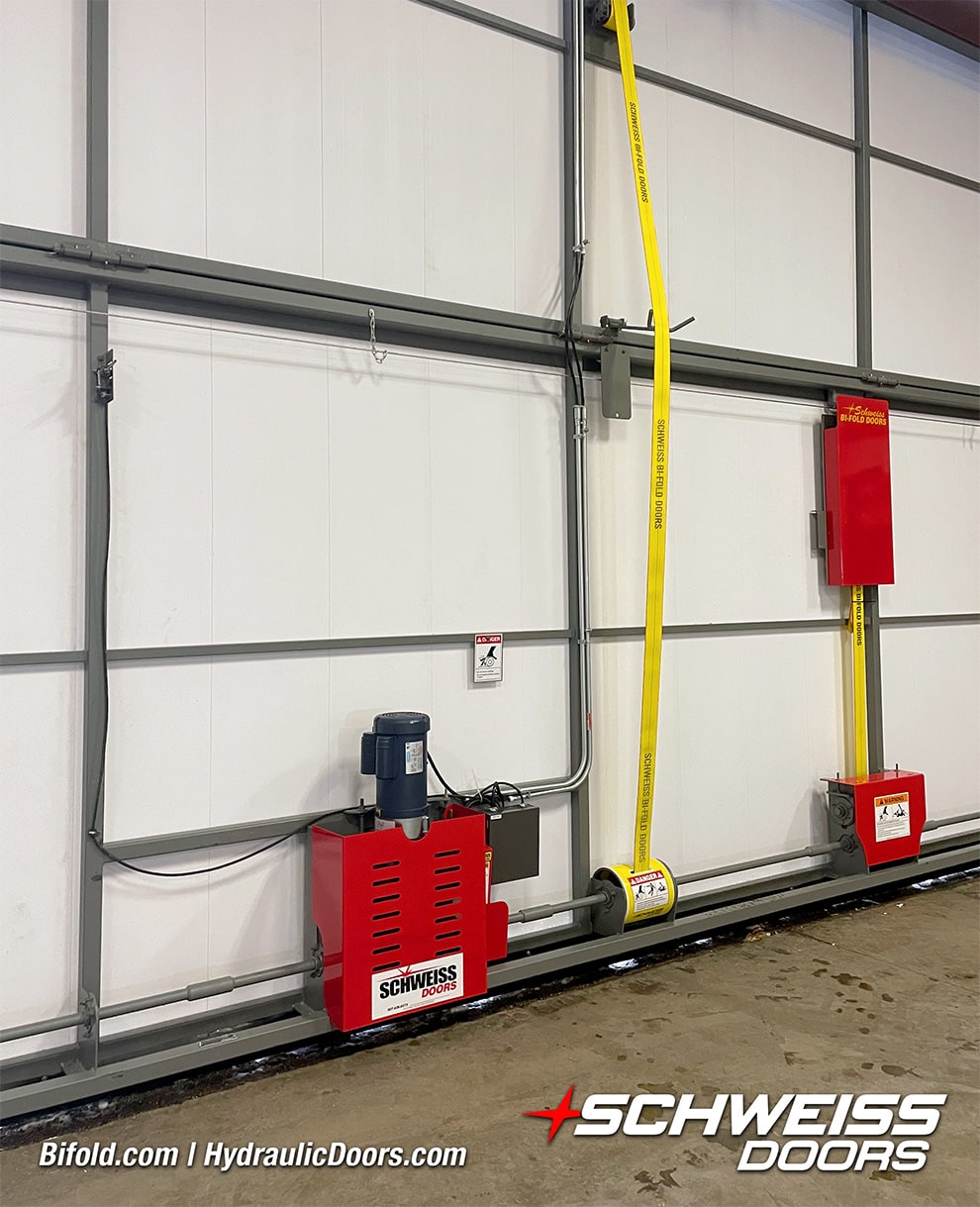 Once the decision had been made to replace the door Nathan didn't go far at all to find the replacement. A brand new Schweiss Doors lift strap bifold was soon ordered. There were several reasons why Nathan stayed with Schweiss.