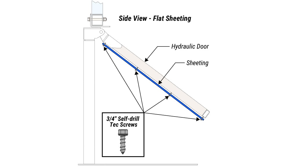 • The same sheeting used on the exterior of your building can be applied vertically to the hydraulic door.