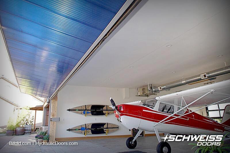 Polycarbonate clad bifold door gives hangar an exclusive look