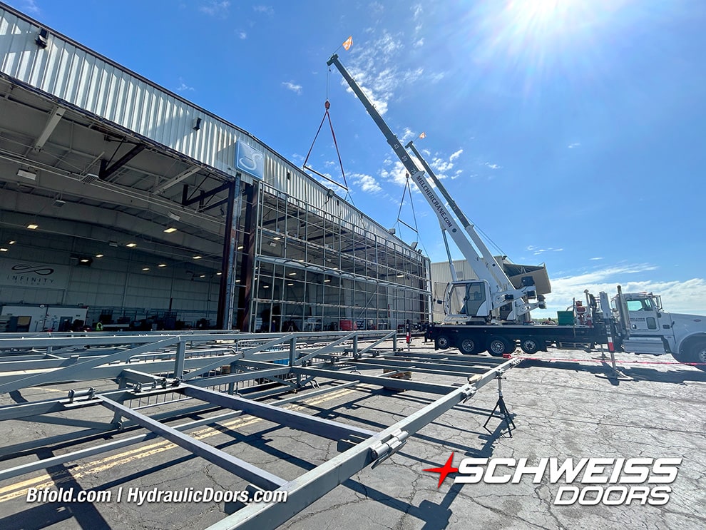 Delivery of the new Schweiss Doors went smoothly, Esposito said, especially because Groome planned ahead. With information from Schweiss Doors, the install crew made sure to have the correct equipment on hand to lift the door panels off the truck.