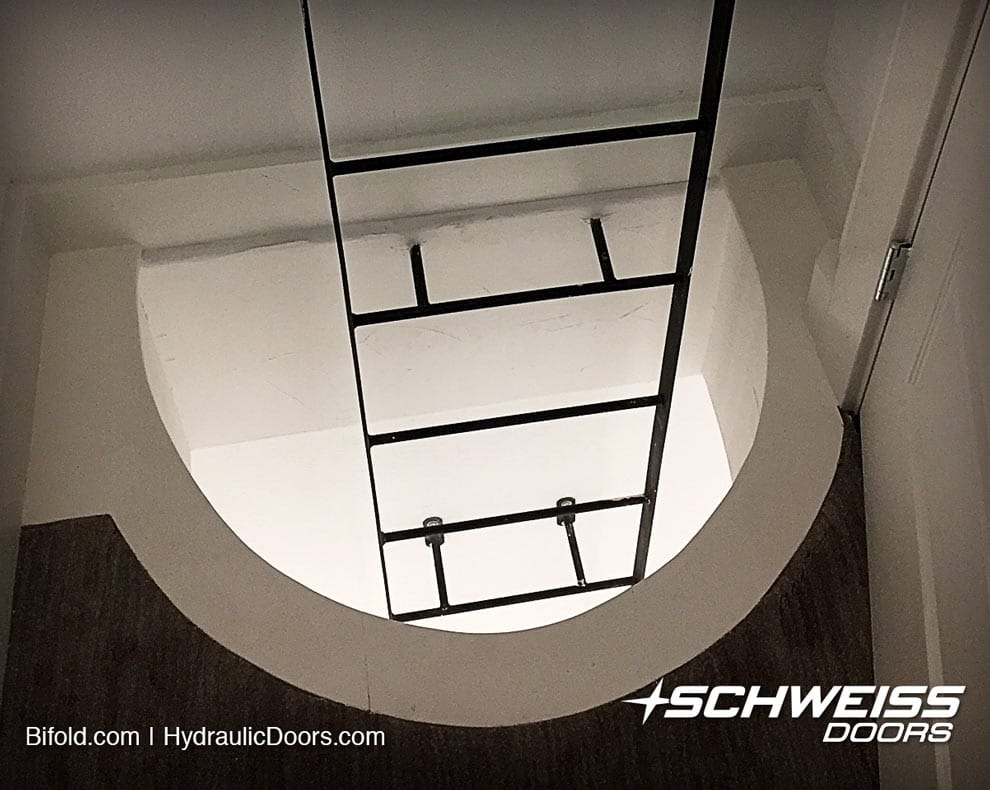 Former airline pilot chooses Schweiss hydraulics for door and lifting garage staircase