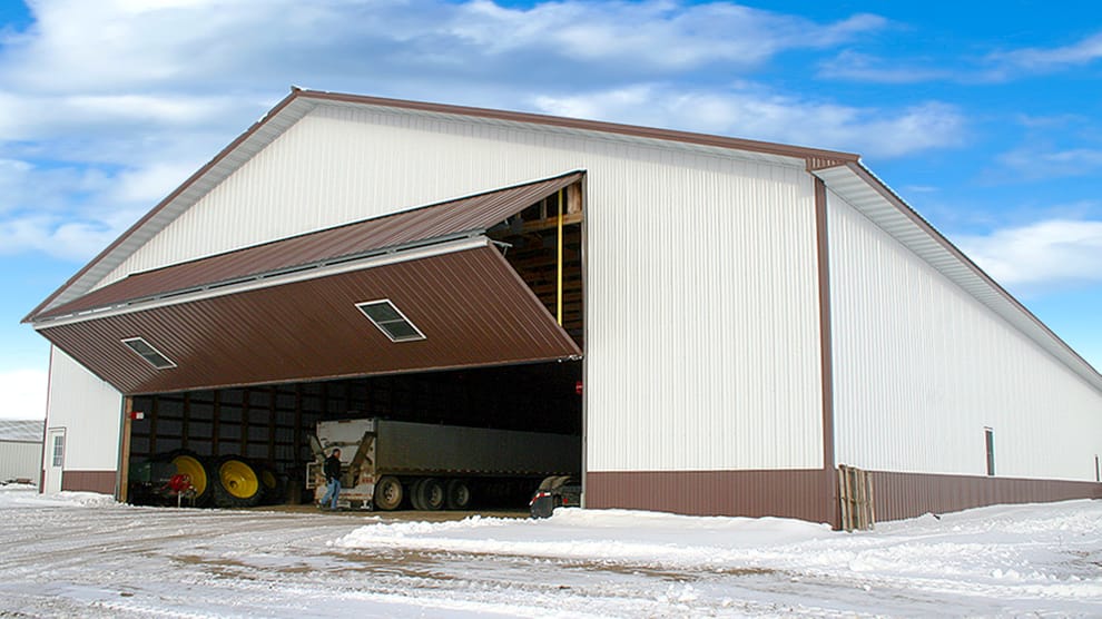 Cinder block pre-engineered Building. Would like a Schweiss Bifold Door with lift straps. One row of windows above eye level to be added as an option in quote. Please offer appearance options. Cold weather option. Measurements are rough opening. Thank you