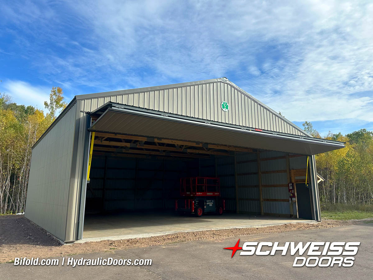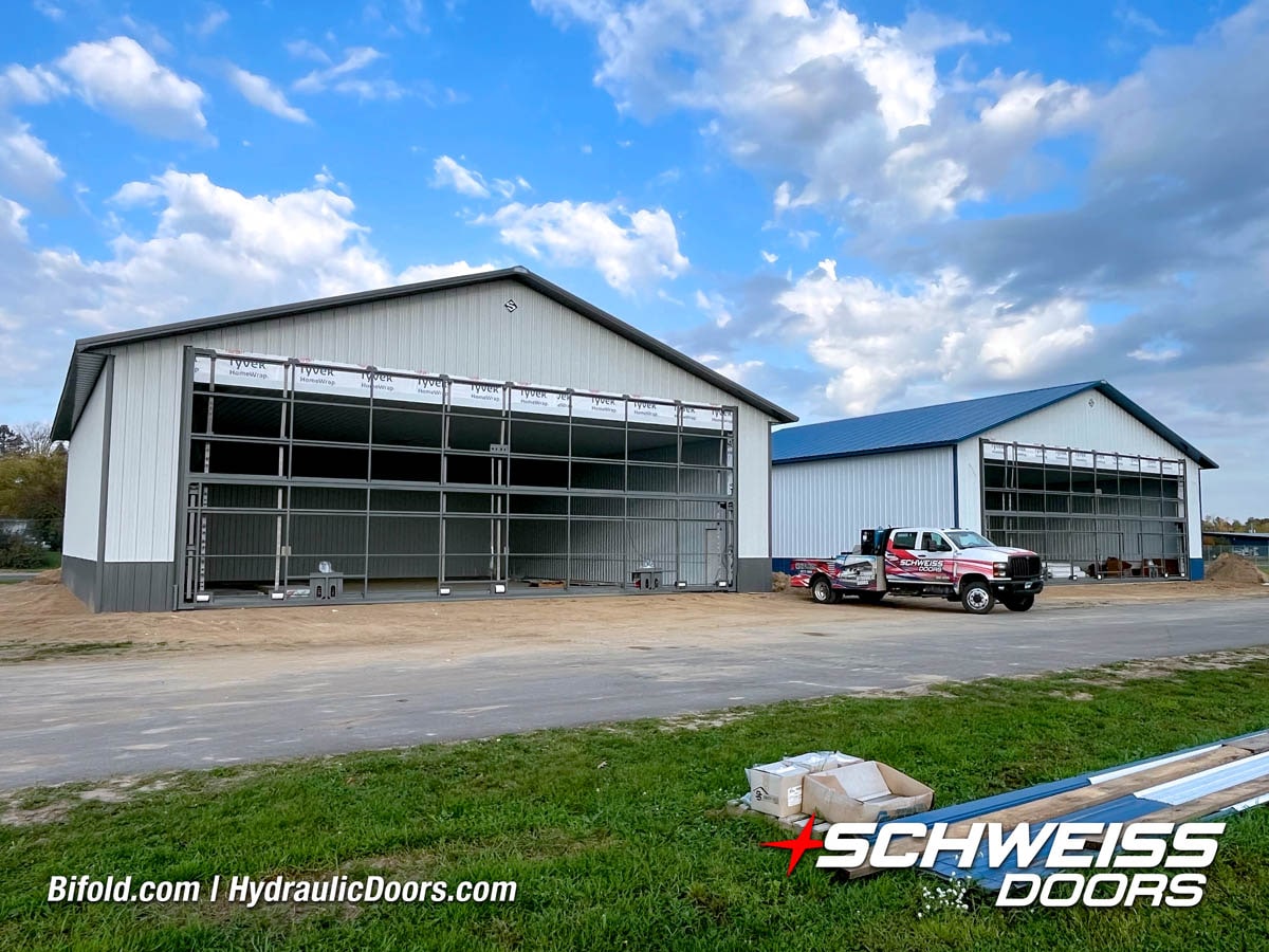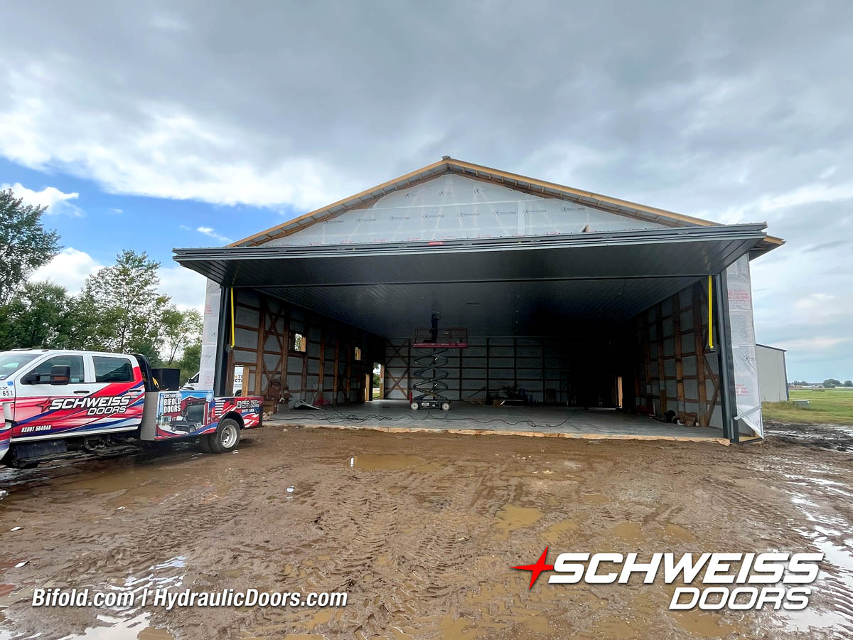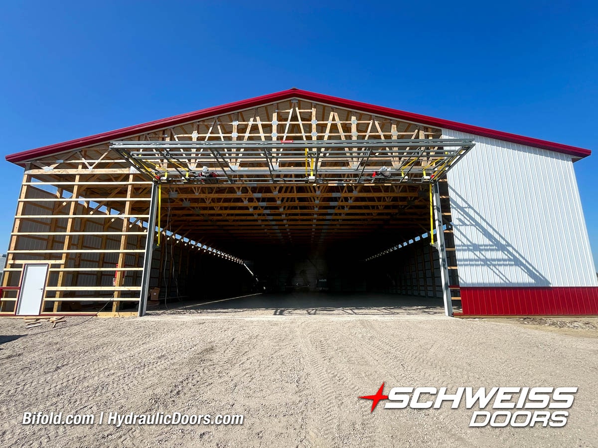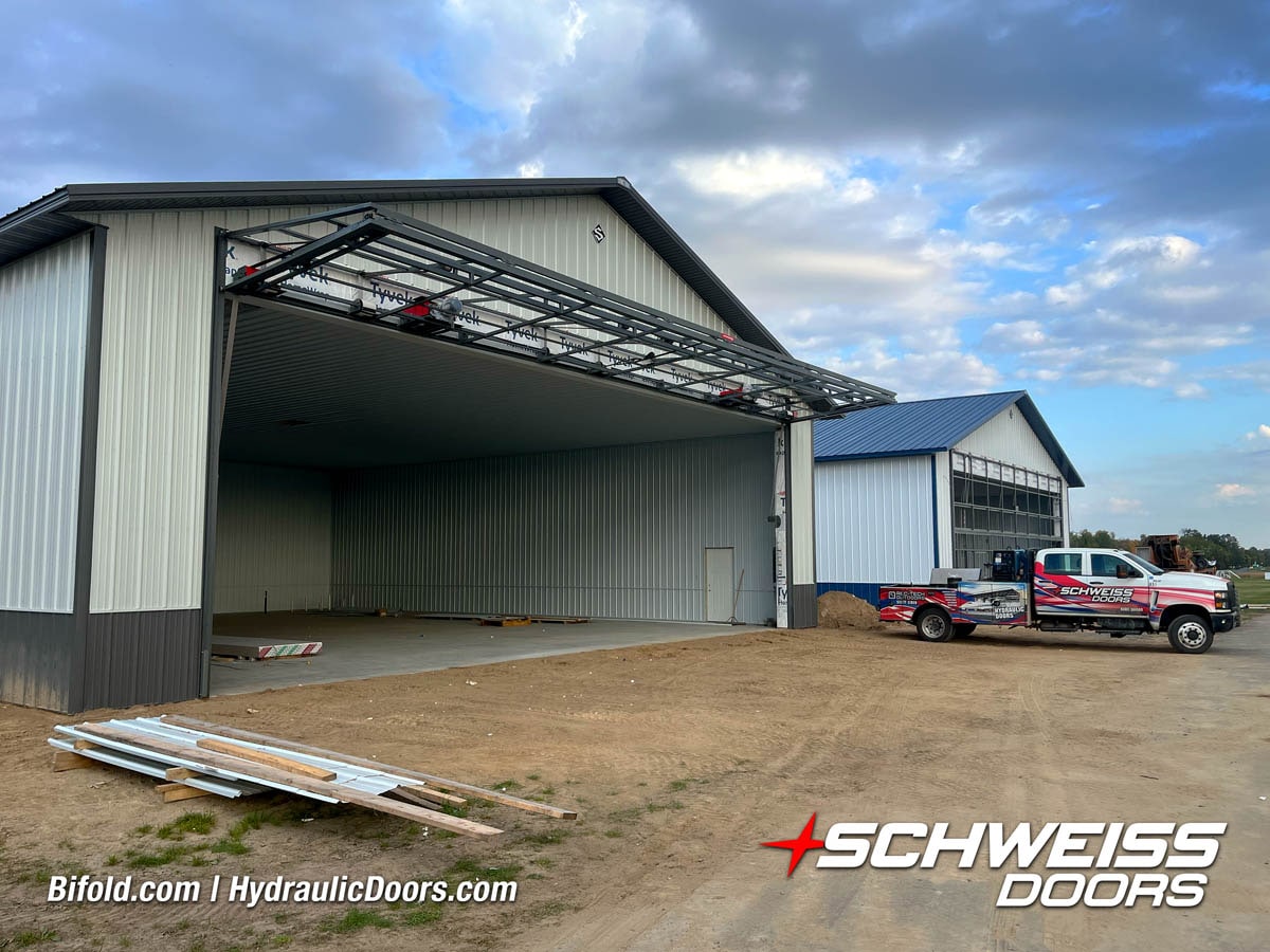 Schweiss Bifold and Hydraulic doors are an excellent choice for farm buildings, shops, manufacturing facilities, and aircraft hangars.