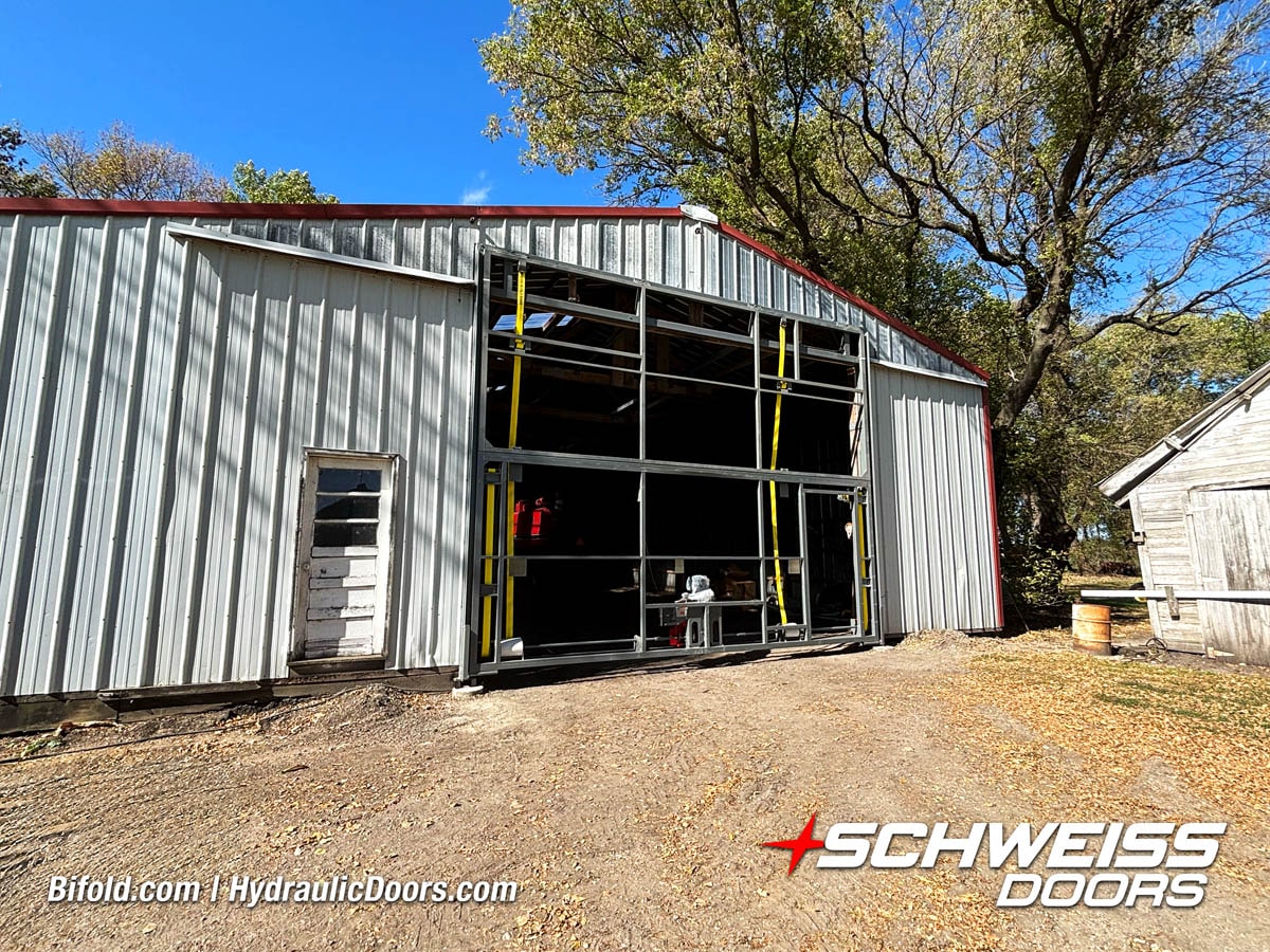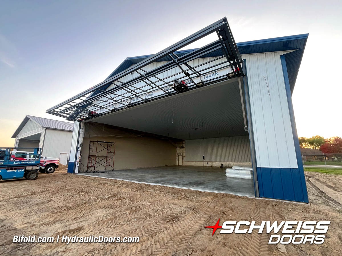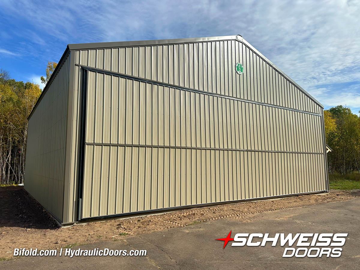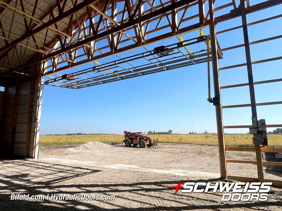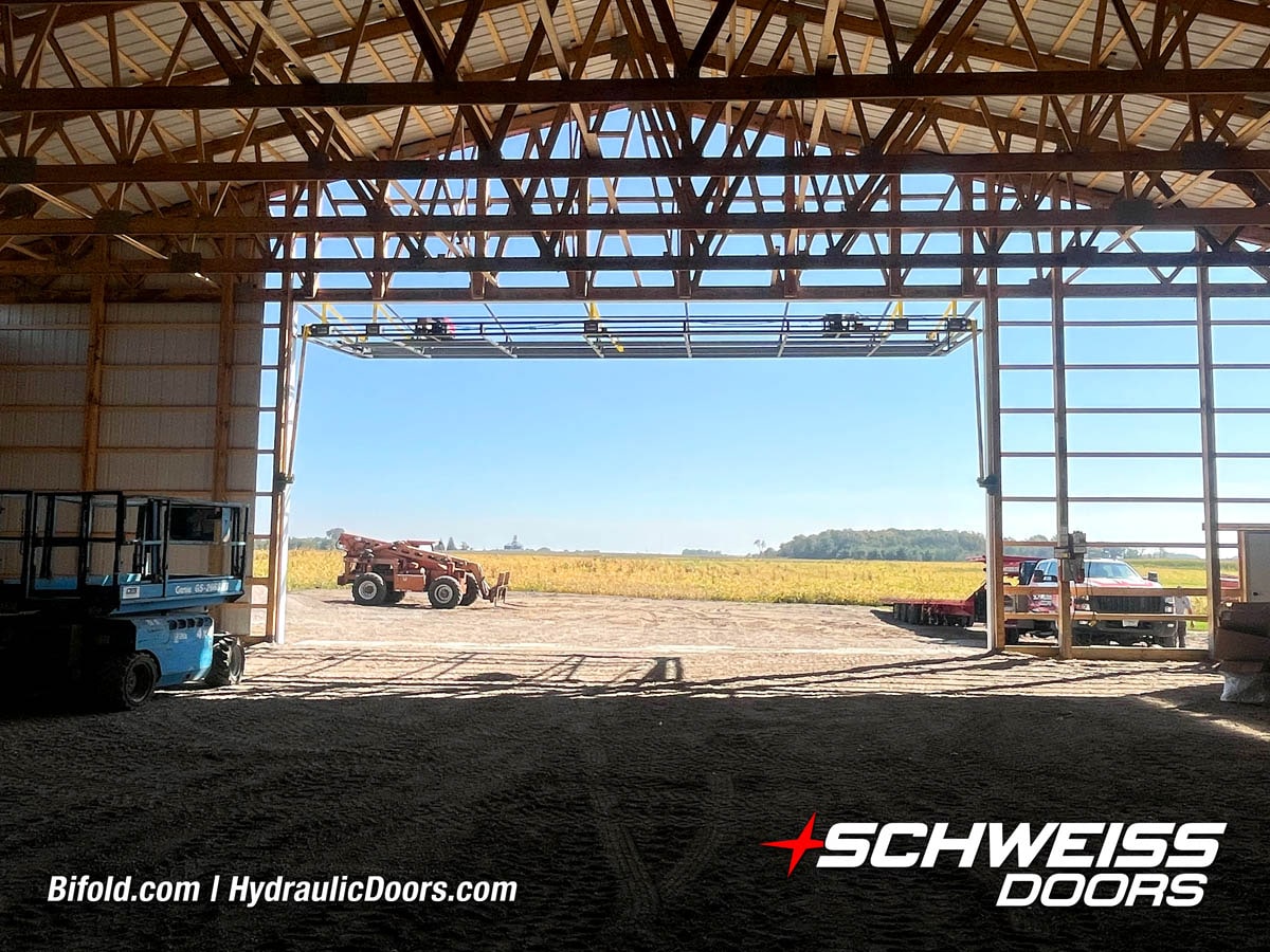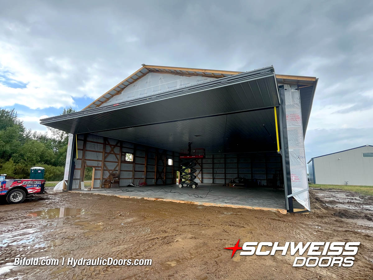 Schweiss Bifold and Hydraulic doors are an excellent choice for farm buildings, shops, manufacturing facilities, and aircraft hangars.
