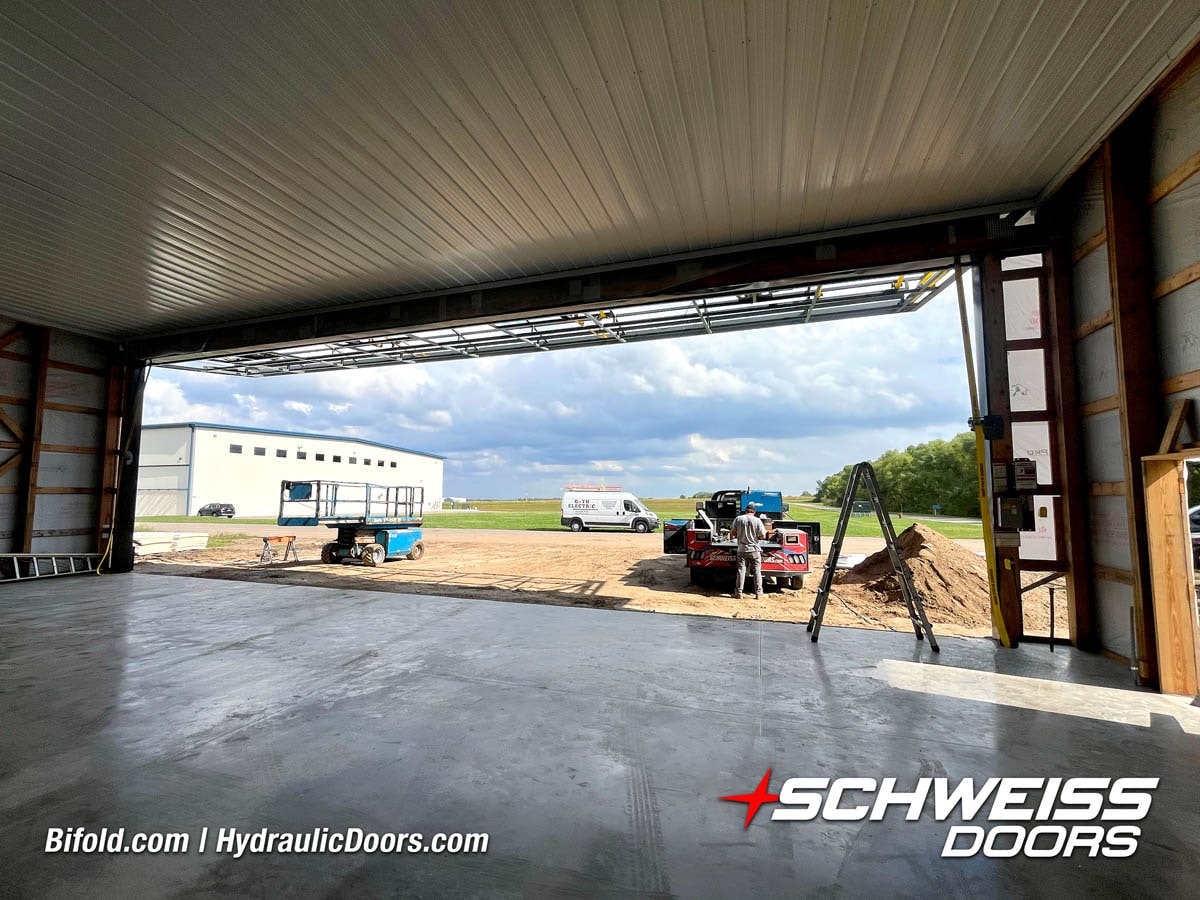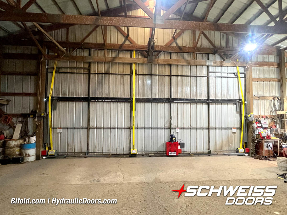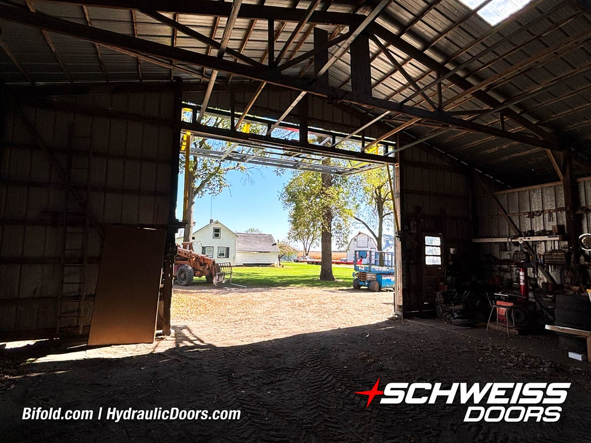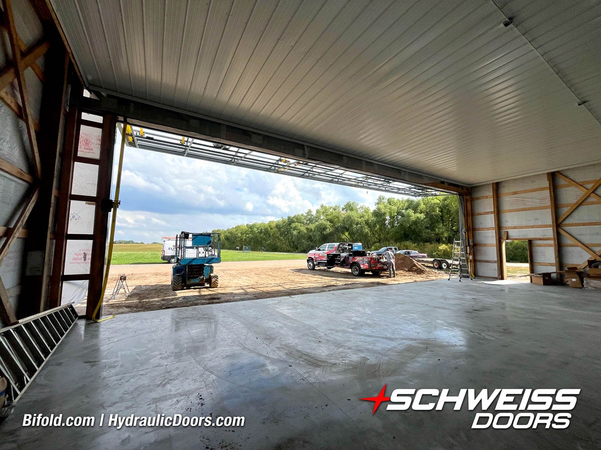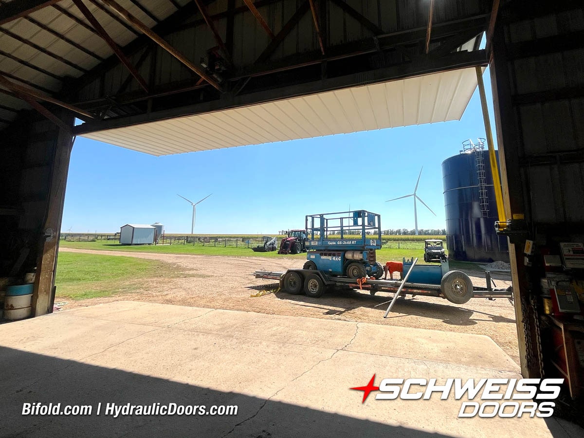 Schweiss Bifold and Hydraulic doors are an excellent choice for farm buildings, shops, manufacturing facilities, and aircraft hangars.
