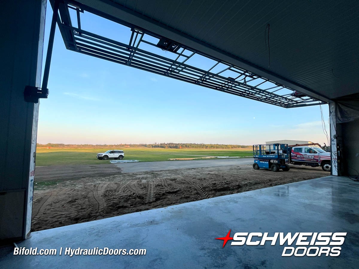 Residential airparks use Schweiss Bifold and Hydraulic doors for fast, reliable and safe opening and closing of their airplane hangars.