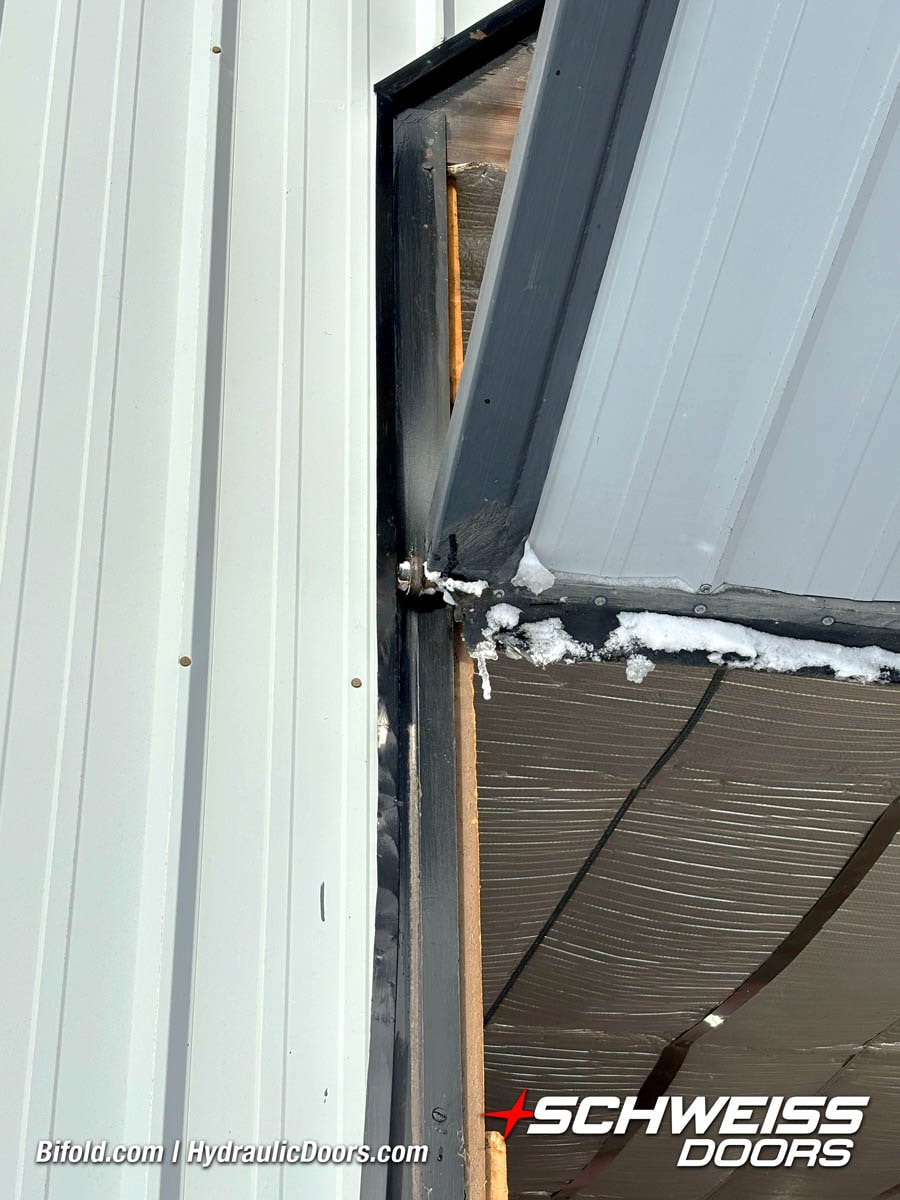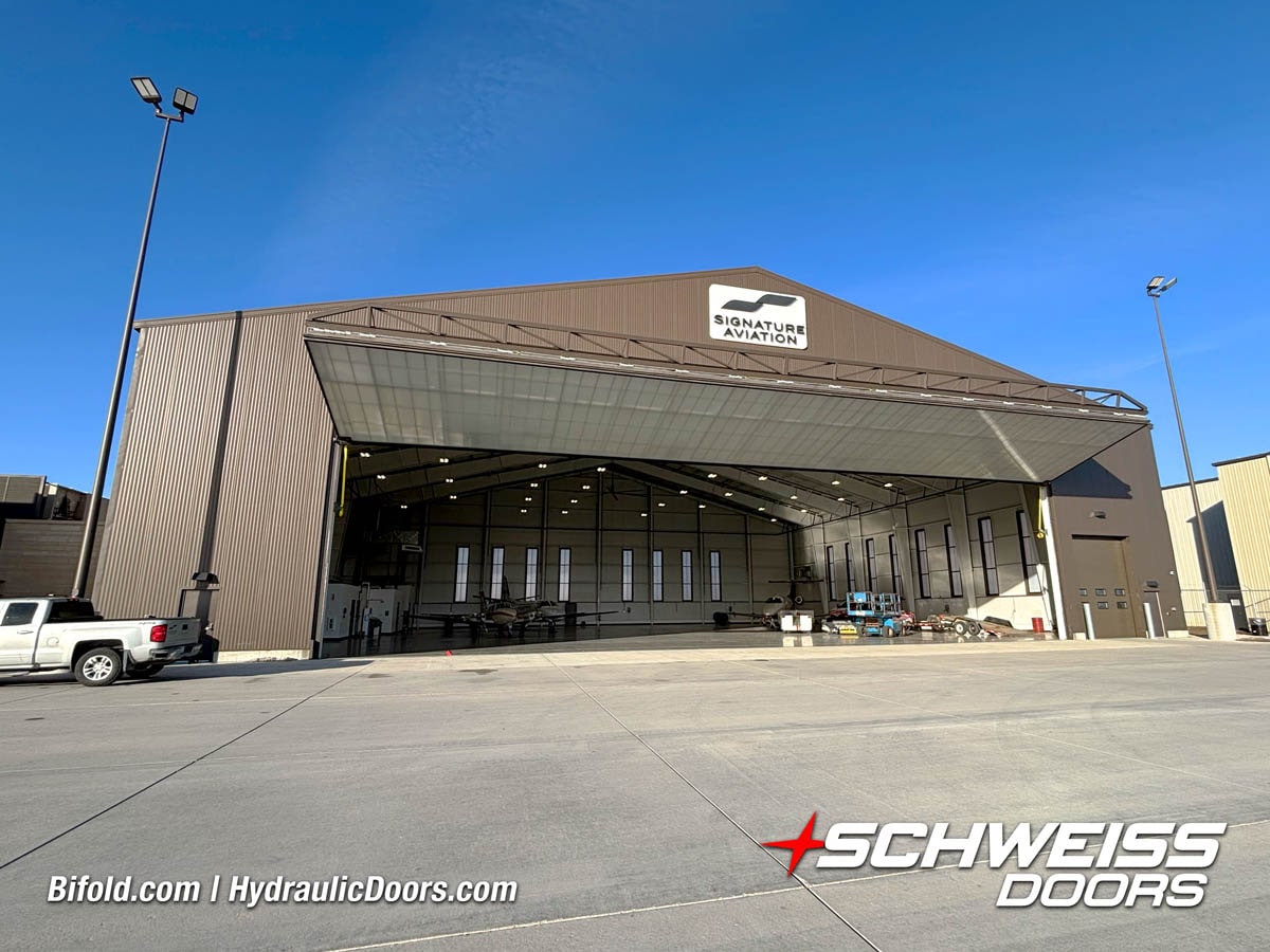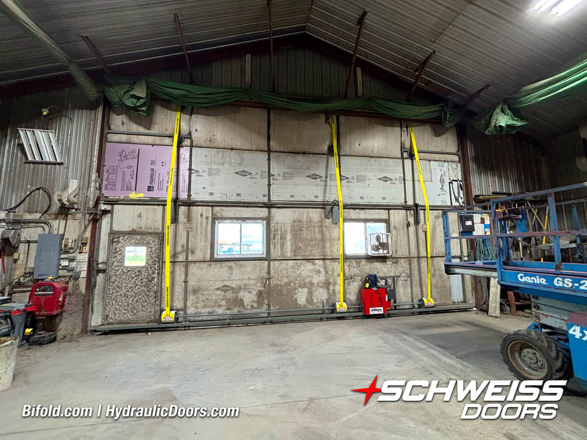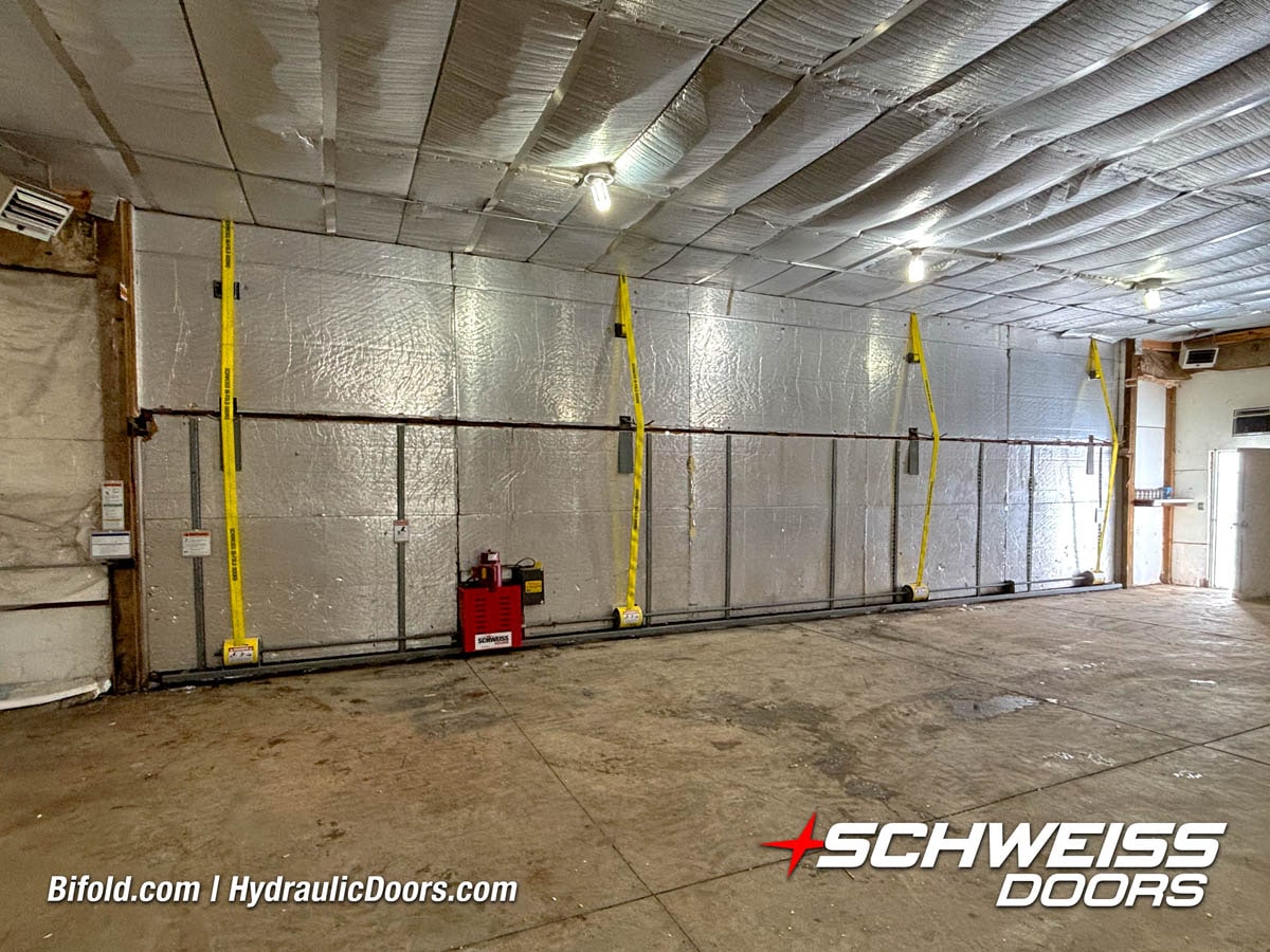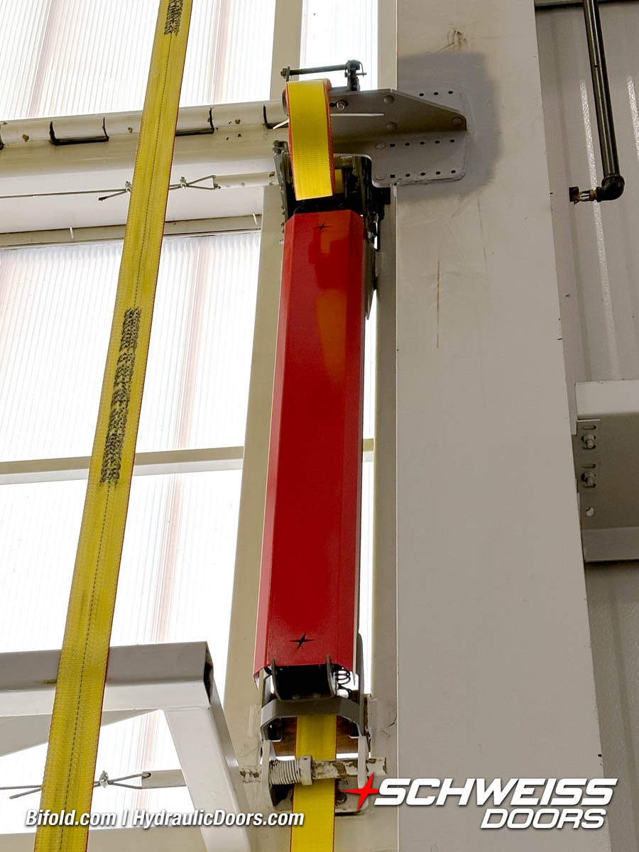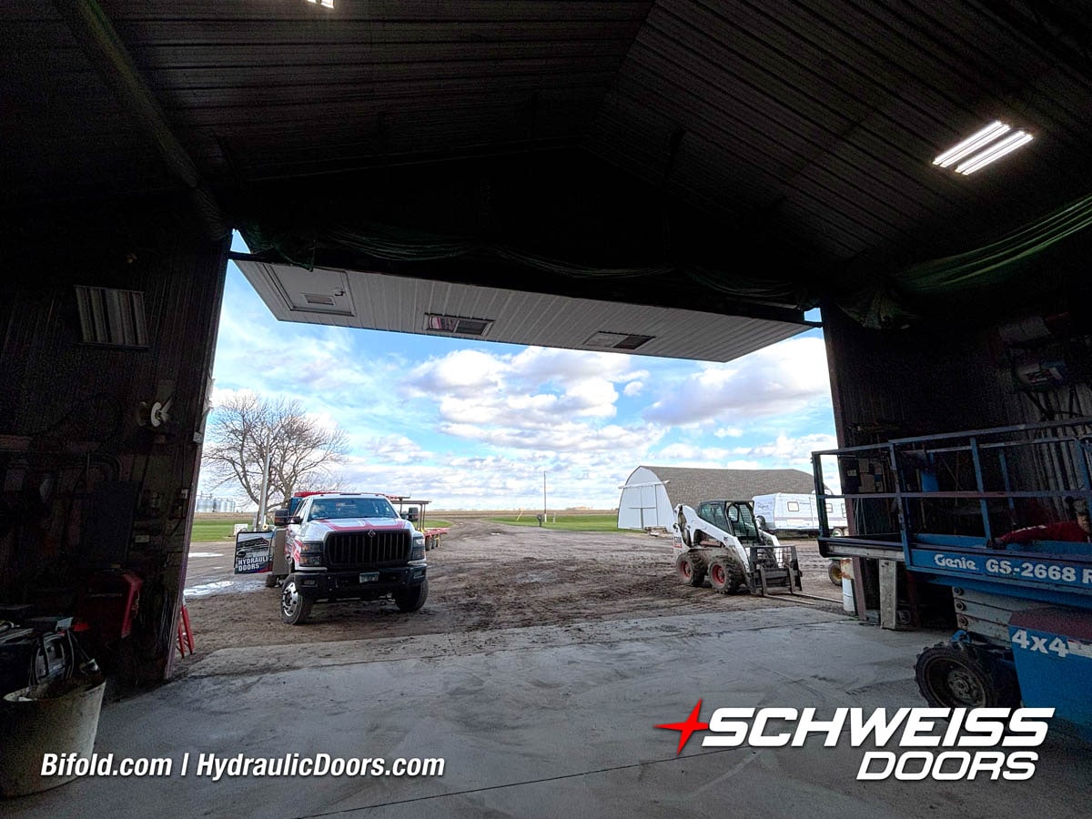 Interior view of Schweiss bifold door installed on a hangar home in Houston shown closed